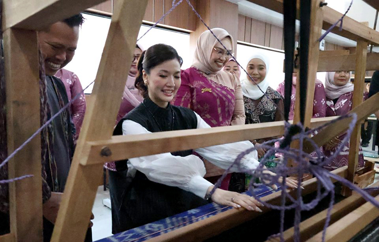 Namun, perhatian utama dalam kunjungan tersebut tertuju pada keindahan Kain Tenun Pagatan, salah satu warisan budaya khas Tanah Bumbu yang memiliki nilai seni tinggi. Tak hanya sekadar melihat, Asty bahkan terjun langsung mencoba proses menenun menggunakan alat tradisional.