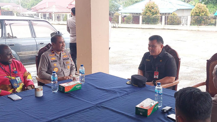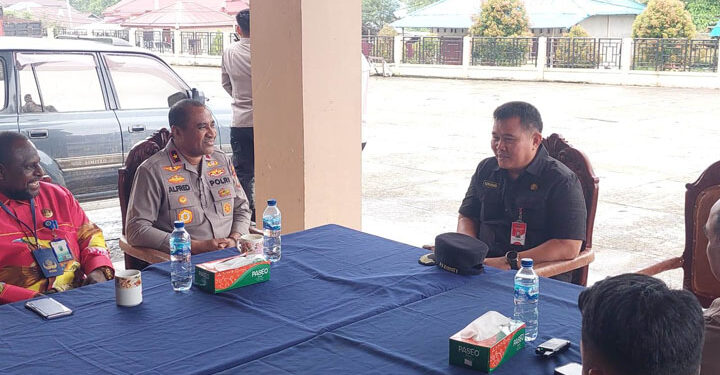 MAYBRAT,— Pj Bupati Maybrat, Dr. Bernhard Eduard Rondonuwu, S.Sos, M.Si, bertemu Wakil Kepala Polisi Daerah (Wakapolda) Papua Barat, Brigjenpol Alfred Papare, S.I.K, di Polres Maybrat, Jumat (12/7).