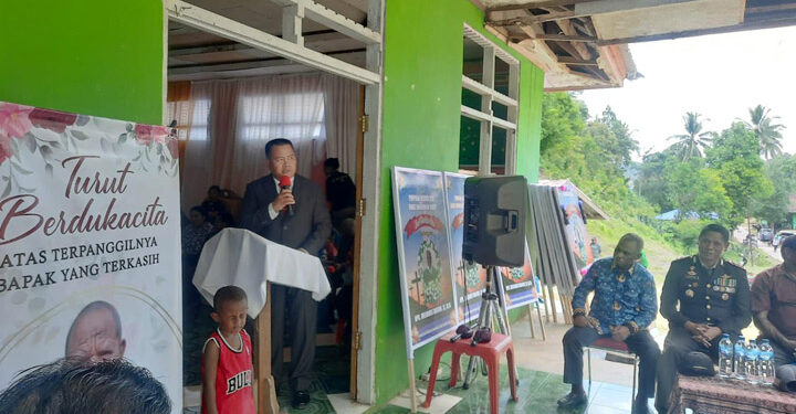 MAYBRAT,– Pj. Bupati Maybrat, Bernhard E. Rondonuwu bersama Forkopimda Maybrat serta Pimpinan OPD di Lingkup Kabupaten Maybrat hadir untuk memberikan penghormatan terakhir ke rumah duka Alm. Melianus Wafom yang merupakan Staf Ahli Bupati Bidang Perencanaan dan Keuangan Kabupaten Maybrat.