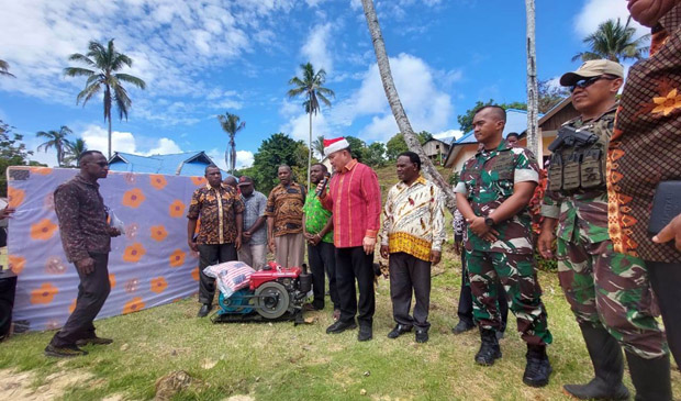 MAYBRAT,– Di Hari Natal 2023, Pj. Bupati Maybrat, Bernhard E. Rondonuwu menyerahkan sebuah genset, kasur dan bantal untuk masyarakat di Kampung Kamat dan Kampung Asem, Distrik Aifat Timur Tengah, Senin (25/12/2023).