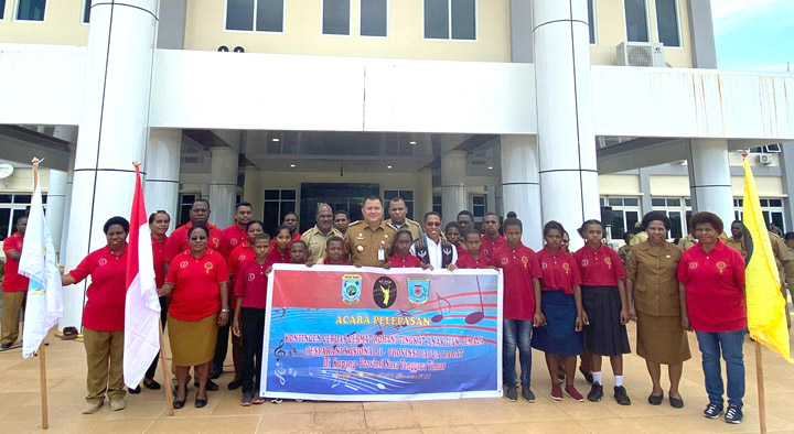 MAYBRAT,– Pj. Bupati Maybrat Berhard E. Rondonuwu memimpin apel pagi, Senin, 10 Oktober 2022, sekaligus melakukan Pelepasan Kontingen Pesparani Nasional di NTT, sebagai perwakilan dari Papua Barat.