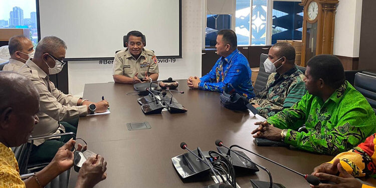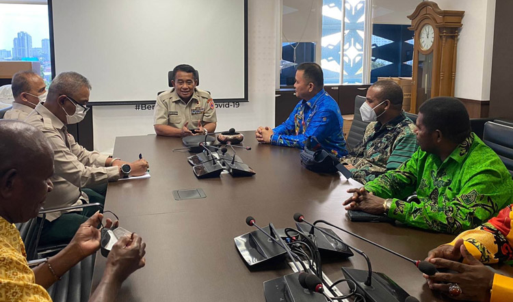 MAYBRAT,– Pj. Bupati Maybrat, Bernhard E. Rondonuwu bersama Wakil 1, 2, Sekretaris Dewan dan anggota DPRD serta Kepala BPBD Kabupaten Maybrat menemuiĀ  Tenaga Ahli BNPB, Mayjen (Purn) Denny Herman, Kepala Pusat Pengendalian Operasi Bambang Surya, M.Kom, Direktur Perencanaan Rehabilitasi Rekonstruksi BNPB Johni Sumbung, serta Deputi Bidang Penanganan Darurat Mayjen TNI Fajar Setyawan, S.IP, di Kantor BNPB Pusat, Jakarta, Senin (16/1/2023).