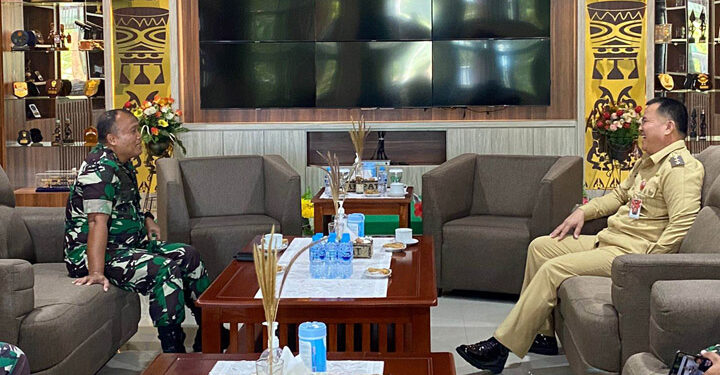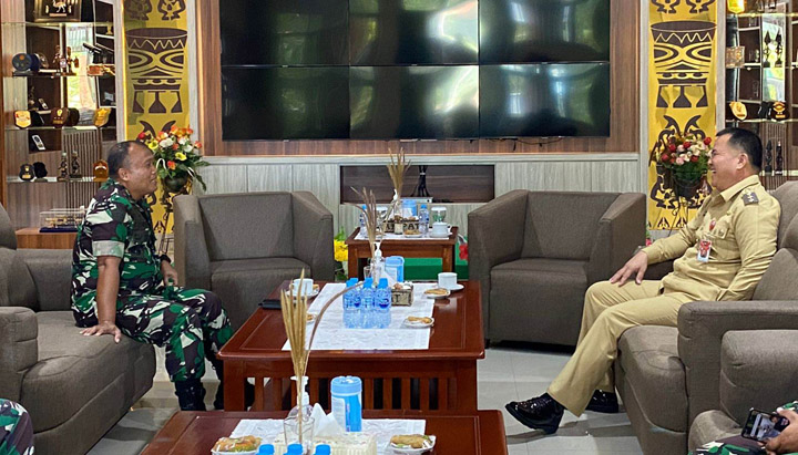MAYBRAT,– Pj. Bupati Maybrat, Bernhard E. Rondonuwu berkoordinasi dengan Danrem 181/Pvt, Brigjen TNI Wawan Erawan didampingi Dandim Maybrat Letkol Infantri Harry Ismail di Korem 181/PVT Kota Sorong, Selasa, 27 September 2022.