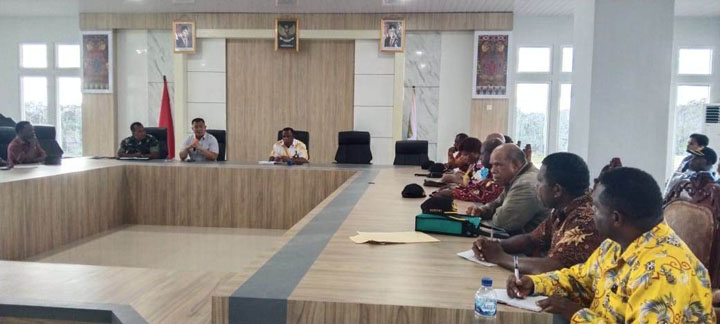 MAYBRAT,– Pj. Bupati Maybrat, Bernhard E. Rondonuwu memimpin rapat kesiapan kunjungan pangdam XVIII/Kasuari dan Uskup Mankowari-Sorong ke Kabupaten Maybrat untuk mengikuti Misa Natal di Kampung Sabah.