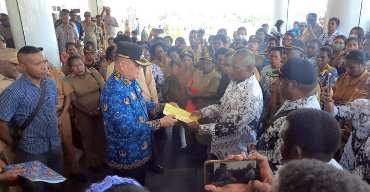 MAYBRAT,– Pj. Bupati Maybrat, Bernhard E. Rondonuwu menerima aspirasi dan penyampaian keluhan oleh PGRI dan Guru di Kabupaten Maybrat, Senin 17 Oktober 2022.