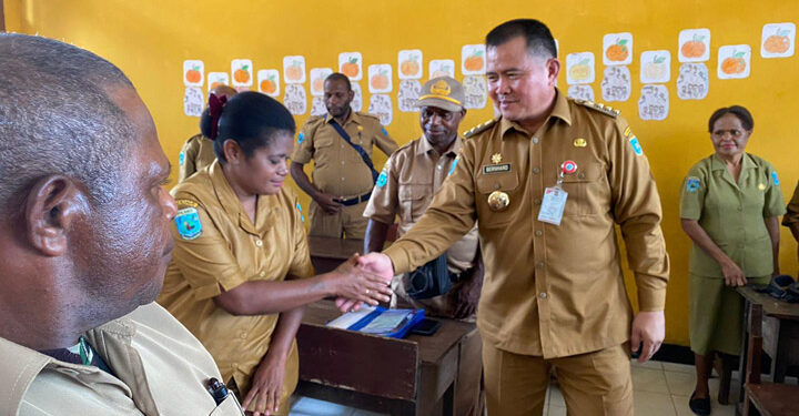 MAYBRAT,– Pj. Bupati Maybrat, Berhard E. Rondonuwu menyerahkan dana bantuan konflik untuk guru di daerah Aifat, Senin (10/10/2022).