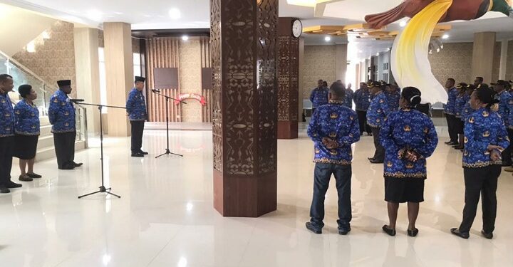 MAYBRAT,- Pj. Bupati Maybrat, Bernhard E. Rondonuwu menyerahkan SK Plt Kepala Bidang Informasi dan Komunikasi Publik pada Dinas Kominfo Kabupaten Maybrat dan SK PNS di lingkungan Pemerintah Kab Maybrat, Rabu (17/5/2023).