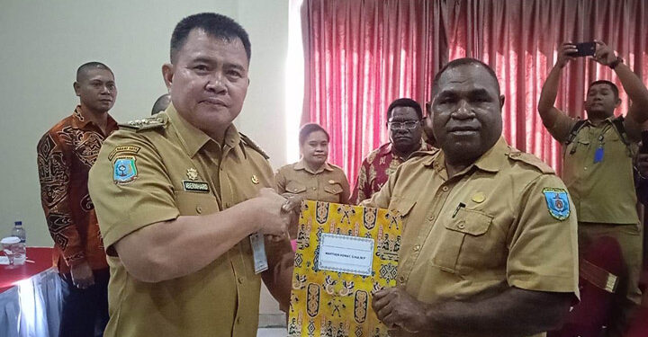 MAYBRAT,– Pj. Bupati Maybrat, Dr. Bernhard E. Rondonuwu, S.Sos. M.Si menyerahkan Surat Keputusan (SK) pelaksana tugas pejabat pimpinan tinggi pratama di lingkungan Pemerintah Kabupaten Maybrat.