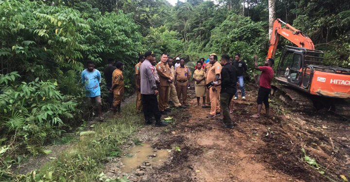 Pj. Bupati Maybrat bersama Dansatgas 133/YS, Kapolres Maybrat, Wakapolres Maybrat, DPRD Kabupaten Maybrat, beberapa OPD, beberapa kepala distrik dan kepala kampung melihat langsung proses peningkatan pekerjaan ruas jalan yang sementara dikerjakan. (Abas)