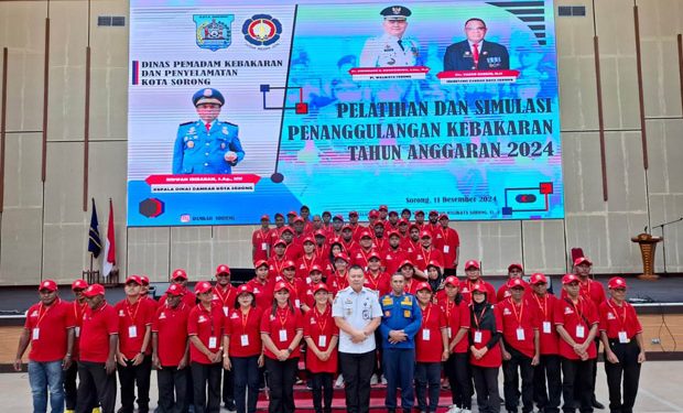 SORONG,– Penjabat Wali Kota Sorong, Dr. Bernhard Eduard Rondonuwu, S.Sos., M.Si., membuka secara resmi Pelatihan dan Simulasi Penanggulangan Kebakaran Tahun 2024 di Gedung Lambethus Jitmau, Rabu (11/12).
