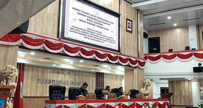 Rapat ini membahas Penyampaian Pendapat Akhir Fraksi-Fraksi DPR terhadap hasil pembahasan Materi Raperda APBD Kota Sorong Tahun Anggaran 2025. Bertempat di Gedung DPR Kota Sorong, acara ini juga dihadiri oleh Sekretaris Daerah Kota, para pimpinan OPD, dan seluruh anggota DPR Kota Sorong.