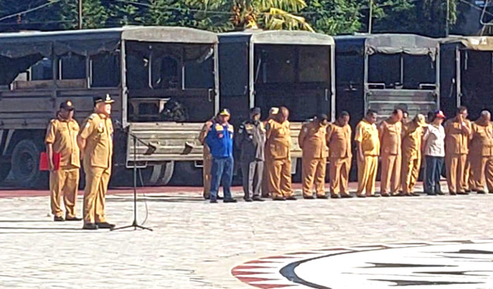 SORONG,– Pj. Wali Kota Sorong Dr. Bernhard Eduard Rondonuwu, S.Sos., M.Si., memimpin apel pagi seluruh Aparatur Sipil Negara (ASN) di lapangan Kantor Pemkot Sorong, Senin (23/9).