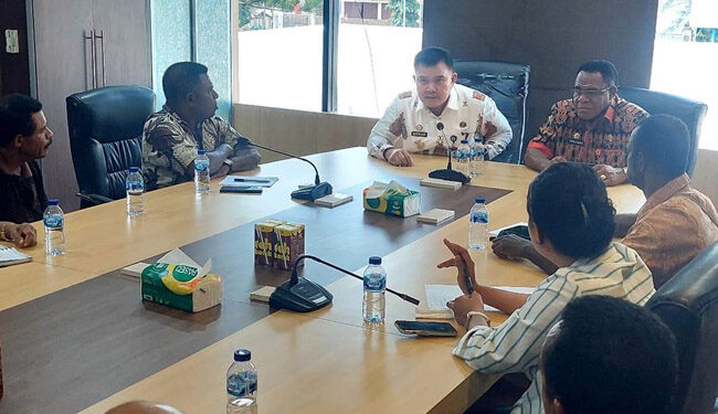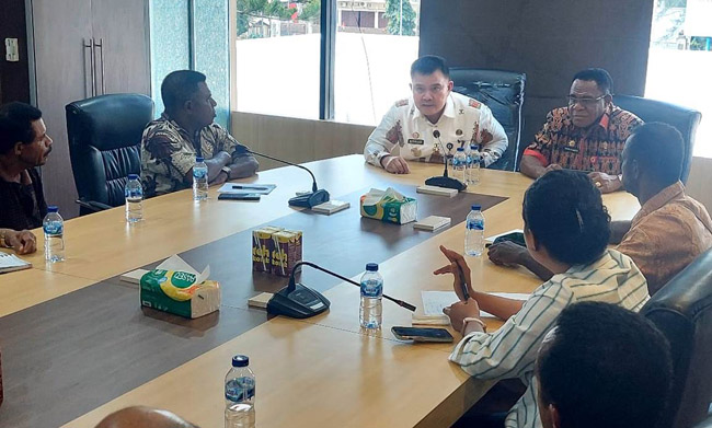 SORONG,– Pj. Wali Kota Sorong, dr. Bernhard Eduard Rondonuwu, S.Sos., M.Si., memimpin rapat evaluasi penanganan sampah dan kebersihan di Kota Sorong, Kamis (26/9).