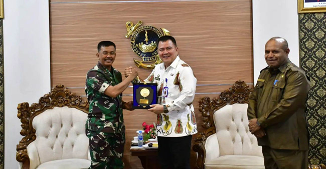 SORONG,– Komandan Pasmar 3 Brigjen TNI (Mar) Sugianto, S.Sos., M.M., M.Tr.Opsla., menerima kunjungan Pj Walikota Sorong Dr. Berhard E. Rondunuwu, S.Sos., di Mako Pasmar 3, Kesatrian Agoes Soebekti, Jl. Sorong-Klamono, Km. 16, Distrik Klaurung, Kota Sorong, Papua Barat Daya, Rabu (21/8).