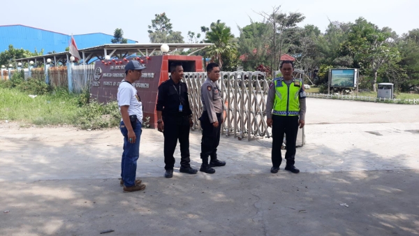 Personel Kepolisian yang bertugas secara masif melaksanakan patroli dan himbauan agar keluar masuk karyawan dan security melalui pintu depan Depo sambil menunggu progres pintu belakang.
