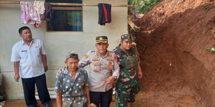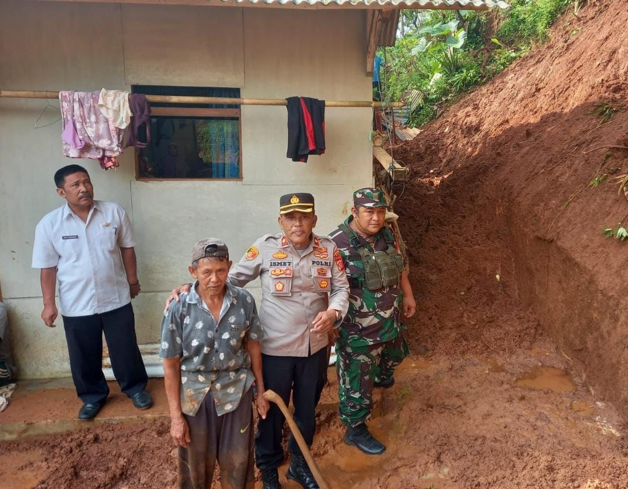 Ciamis,-Kapolsek Ciamis Polres Ciamis Polda Jabar Kompol Ismet Inono mendatangi kediaman warga yang terdampak bencana alam tanah longsor diwilayah di Dusun Cisadap Rt.01 Rw.05 dan Dusun Cibungkul Rt.02 Rw.13 Desa Cisadap, Kecamatan Ciamis, Kabupaten Ciamis, Jawa Barat, Rabu (22/02/2023).