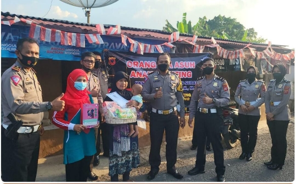 Subang,-Atas petunjuk dan arahan Kapolres Subang Polda Jabar Kasat Lantas Polres Subang Polda Jabar melaksanakan giat orangtua asuh anak stunting di Pasirkareumbi, Kamis (11/8/2022).