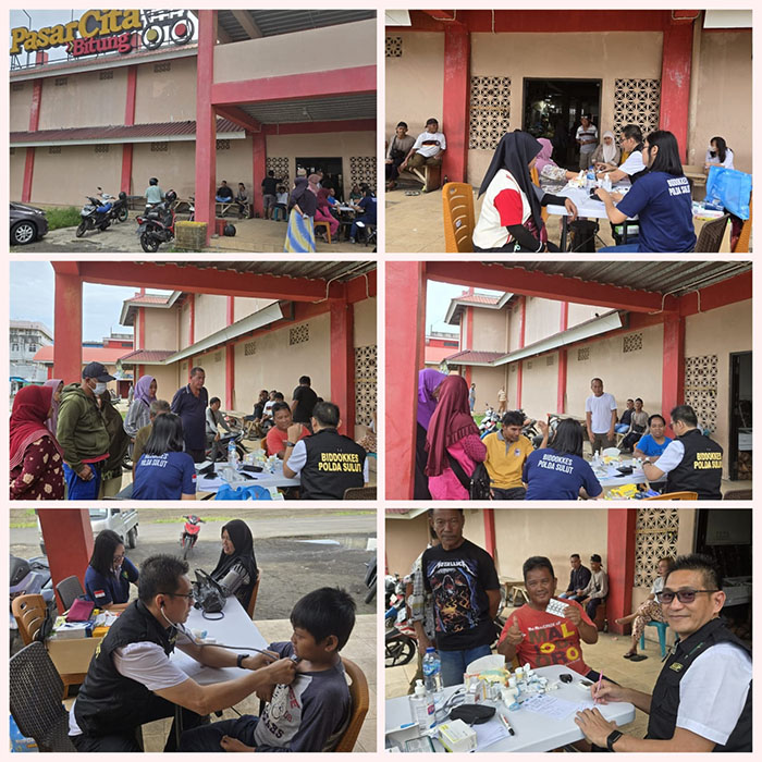 BITUNG, — Polres Bitung melaksanakan kegiatan Bakti Kesehatan secara serentak dalam rangka mendukung program ketahanan pangan dan meningkatkan kesejahteraan masyarakat. Kegiatan ini berlangsung di Pasar Cita Bitung dan diikuti oleh tim kesehatan Polres Bitung, Rabu (08/10/2025).
