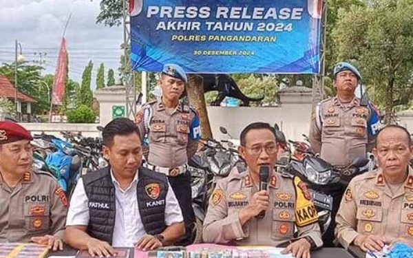 Seperti halnya yang di sampaikan Kapolres Pangandaran AKBP Mujianto, S.I.K., M.H., bahwa selama tahun 2024 ini kita telah menagani berberapa kasus diantaranya, kejahatan curan sebanyak 16 kasus, curanmor sebanyak 12 kasus Senin (30/12/2024).