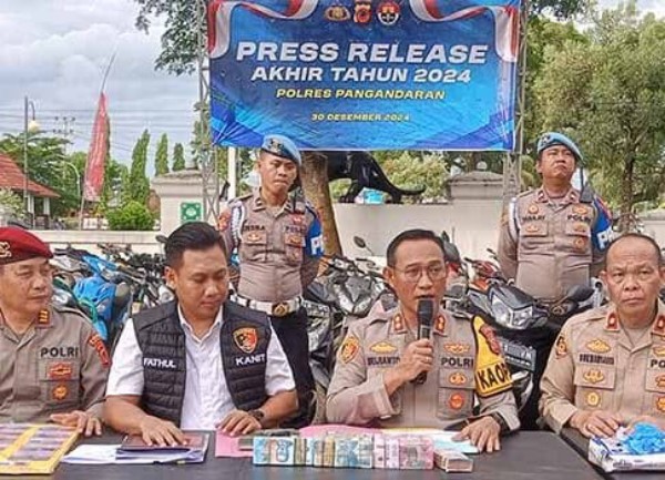 Seperti halnya yang di sampaikan Kapolres Pangandaran AKBP Mujianto, S.I.K., M.H., bahwa selama tahun 2024 ini kita telah menagani berberapa kasus diantaranya, kejahatan curan sebanyak 16 kasus, curanmor sebanyak 12 kasus Senin (30/12/2024).