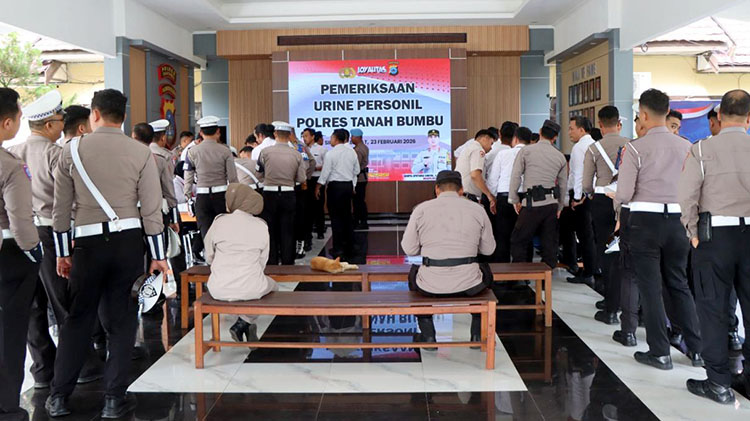 TANAH BUMBU, – Dalam upaya memastikan kedisiplinan dan integritas anggota, Polres Tanah Bumbu melaksanakan tes urine terhadap seluruh personel, bertempat di Pendopo Gajah, pada Senin, 23 Februari 2026 mulai pukul 08.30 WITA hingga selesai.