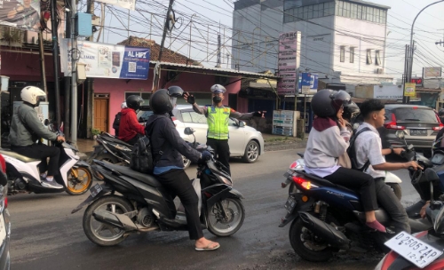 Anggota Polsek Margaasih Polres Cimahi Giat Pelayanan Lalu Lintas Pagi Hari