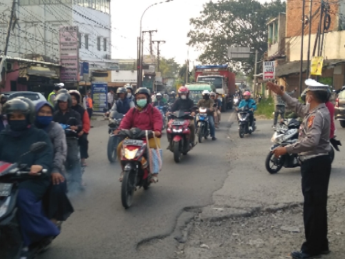 Anggota Unit lalu lintas Polsek Batujajar AKP Tarmubi Antensi melaksanakan pemantauan lalulintas di Depan mako dan di Pos Gatur Cangkorah, Graha Kencana pada Minggu (11/6/2023) dimulai pukul 06.30 WIB.