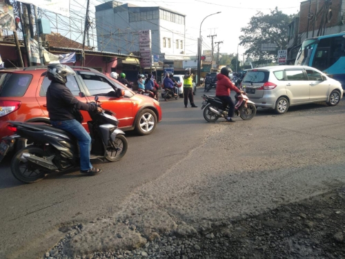 Anggota Unit lalu lintas Polsek Batujajar AKP Tarmubi Antensi melaksanakan pemantauan lalulintas di Depan mako dan di Pos Gatur Cangkorah, Graha Kencana pada Kamis (25/5/2023) dimulai pukul 06.30 WIB.