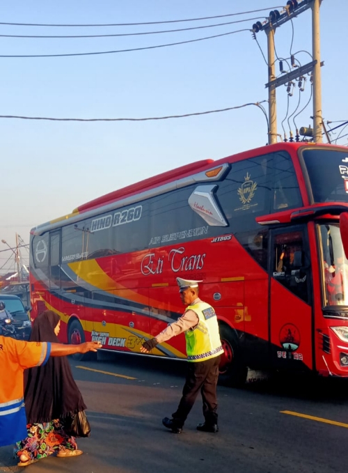 IPDA Mulyadi Yusup ( Panit 1 ), Bripka M Husen bersama dengan Aiptu Kuswandi memonitoring arus lalulintas kendaraan di Pos pertigaan saguling dan Pos pertigaan cirata agar selalu dalam keadaan kondusif.