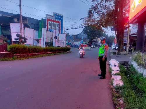 Polsek Lembang Intens Memantau Lalu Lintas Sore Hari di Jalur Wisata