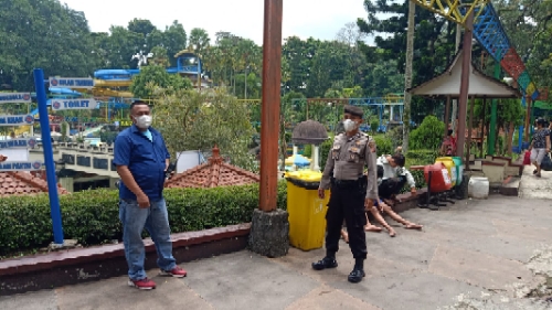 BANDUNG, — Polrestabes Bandung, Polsek Sukasari melaksanakan Monitoring dan Pengamanan Giat Tempat Wisata Air Karang Setra Jl.