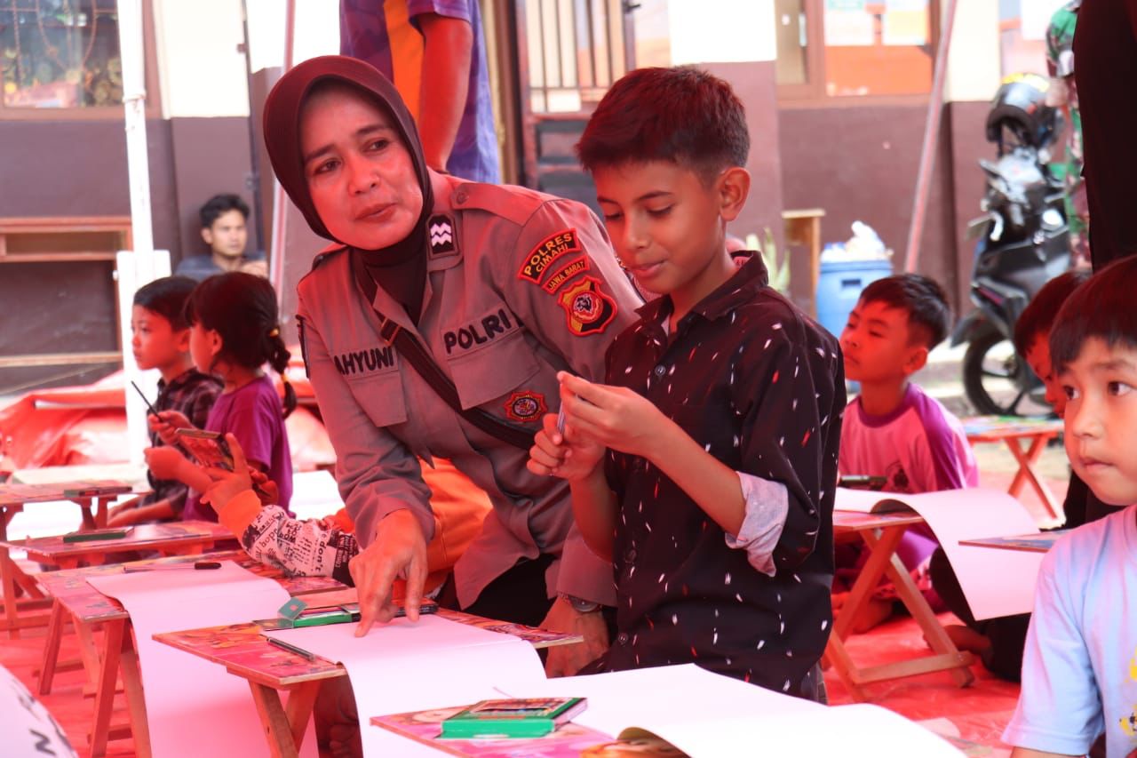 Kapolres juga menjelaskan bahwa Tim Trauma Healing Polres Cimahi Polda Jabar yang beranggotakan para Polwan, hari ini telah melakukan tugasnya dengan baik dan memberikan hiburan terhadap sekitar 75 anak anak yang terdampak bencana longor serta membagikan snack makanan ringan, Sabtu (30/3/2024)