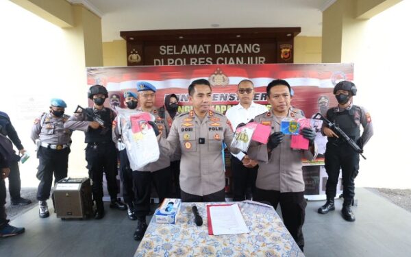 “Adapun tersangka berjumlah 2 orang, 1 berhasil diamankan dengan inisial SL dan 1 lagi masih dalam pencarian dengan inisial NV, kedua pelaku menawarkan arisan online kepada para korban melalui pesan status whatsaap dengan mencantumkan harga paket arisan serta mengiming – imingi keuntungan lebih tanpa adanya arisan pokok.” Ucap Kapolres Cianjur Polda Jabar.