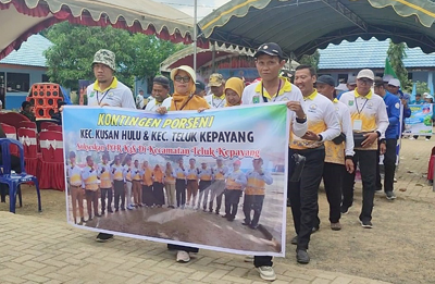 Parade ini berturut-turut menampilkan kontingen tuan rumah Kecamatan Kusan Hulu dan Teluk Kepayang diikuti kontingen kecamatan lain yang kemudian ditutup parade paling akhir para kepala sekolah Kecamatan Satui. Seketika masing-masing kontingen bergerak membawa baliho bertuliskan asal wilayah dengan motto yang unik menarik dan menggelit sembari mengenakan seragam ciri khas tampak melambaikan tangan.