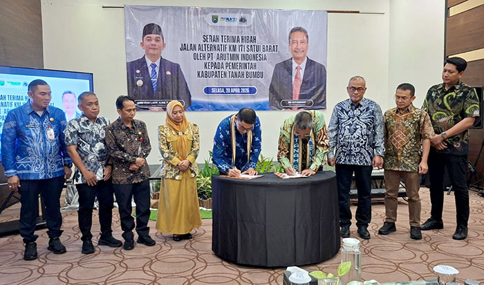 TANAH BUMBU, – PT Arutmin Indonesia resmi menyerahkan hibah jalan alternatif Kilometer 171 Satui Barat kepada Pemerintah Kabupaten Tanah Bumbu (Pemkab Tanbu). Penyerahan tersebut dilaksanakan di Hotel Novotel Airport Banjarmasin dan dihadiri oleh sejumlah instansi terkait, pada Selasa, 28 April 2026 pukul 17.00 WITA.