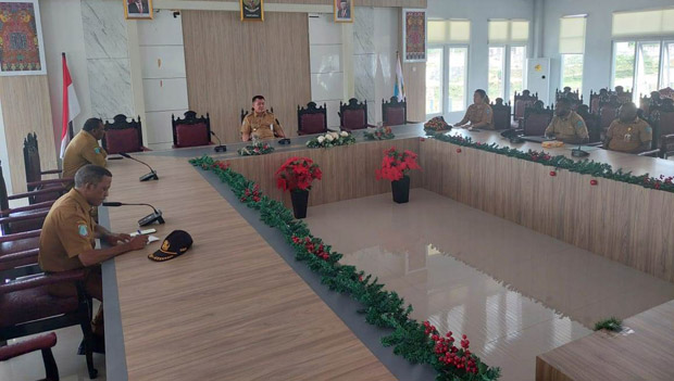 MAYBRAT,– Penjabat (Pj) Bupati Maybrat, Bernhard E. Rondonuwu melaksanakan Rapat Evaluasi dengan Dinas Pendidikan Kabupaten Maybrat, di kantor bupati, Senin, 18 Desember 2023.