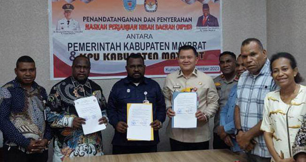 Penandatangan antara Pemerintah Kabupaten Maybrat dan KPU Kabupaten Maybrat itu berlangsung di Rylich Panorama Hotel, Jl. Sam Ratulangi, Nomor 55, Kampung Baru, Kelurahan Klasur, Distrik Sorong Sorong Kota, Kota Sorong.