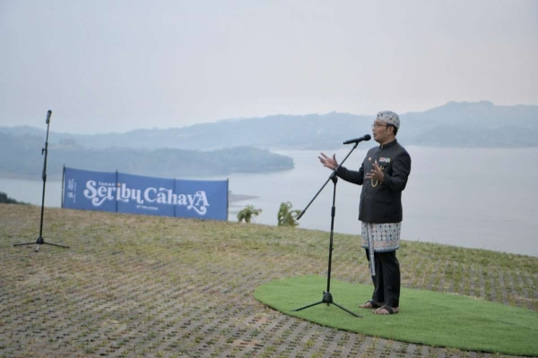 Setelah sebelumnya meresmikan Menara Kujang Sapasang, di hari yang sama Ridwan Kamil juga membuka destinasi wisata baru Taman Seribu Cahaya.