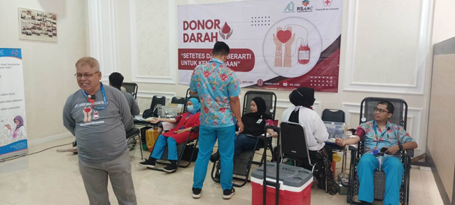 Penyelenggara donor darah, sekaligus Humas RS AMC, H.M Engkos Kosasih mengatakan, donor darah tersebut dalam rangka HUT ke 18 AMC serta untuk membantu kebutuhan darah masyarakat Palestina.
