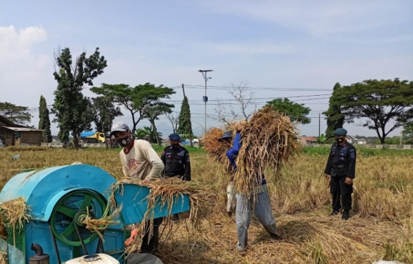 Cirebon, Anggota Kompi 4 Batalyon C Pelopor Satbrimob Polda Jabar Dpp Danton 1 IPDA Alim Fauzi S.H melakukan peninjauan ke Ketahanan Pangan sektor pertanian di Tengah Pandemi Covid-19 desa Winong Kecamatan Gempol Kab.Cirebon.