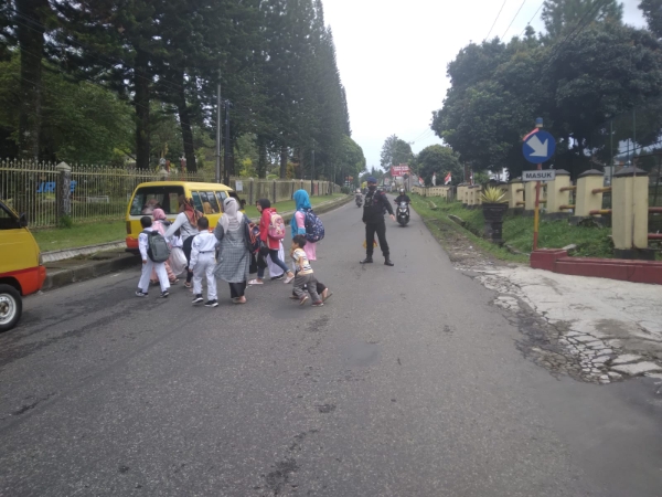 Dari hal mengenai padatnya arus lalu lintas tersebut Anggota piket jaga Mako kompi 2 Batalyon B Pelopor Sat brimob Polda Jawa Barat Briptu Tegar melaksanakan pelayanan masyarakat dengan melakukan gatur lalin di depan Mako untuk menyeberangkan anak-anak yang sedang berpulang sekolah .