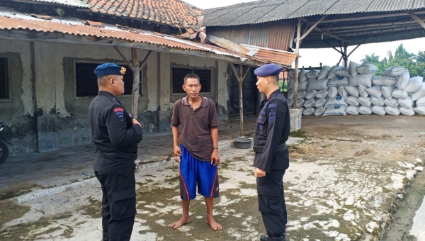 Cirebon,Anggota Kompi 4 Batalyon C Pelopor Satbrimob Polda Jabar Aipda Ade Bayu Setyo berikan himbauan kamtibmas kepada para pekerja di penggilingan padi untuk selalu bersama sama menjaga kamtibmas di desa Winong Kec. Gempol Kab. Cirebon.