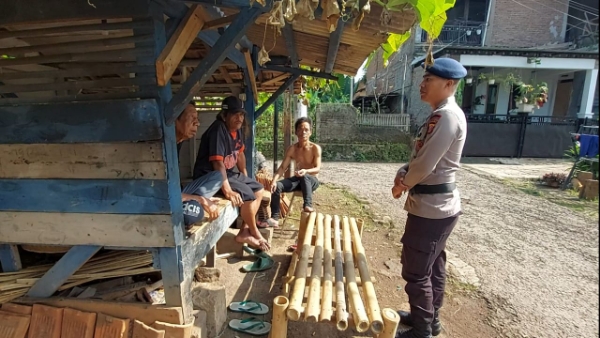 Sumedang,-Antisipasi tindak Kejahatan, tim patroli Kompi 2 Batalyon A Pelopor Satuan Brimob Polda Jabar yang dipimpin oleh Bripda Yogi bersama anggota lainnya melaksanakan patroli dialogis dan sambang kepada Warga sekitar Desa Jatinangor.