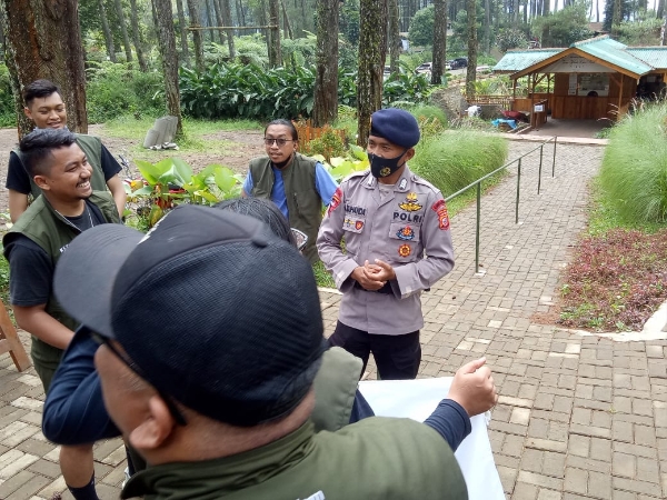 Lembang,-Anggota Kompi 1 Batalyon B Pelopor Satuan Brimob Polda Jabar Bripka Amay Yuhanda melaksanakan patroli dengan menyambangi masyarakat di wilayah objek wisata hutan alam jayagiri kecamatan lembang kabupaten bandung barat,Minggu (06/11/2022)