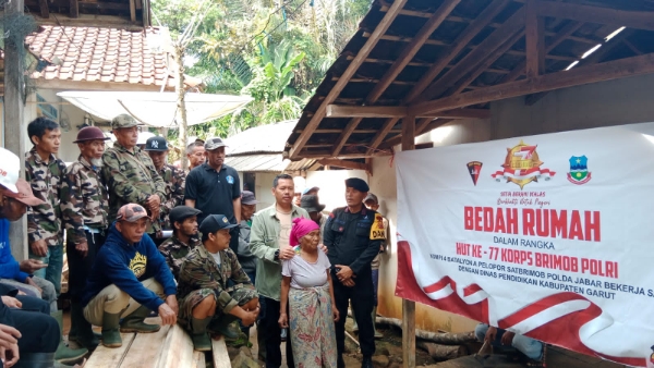 Dalam arahannya Danki 4 Batalyon A Pelopor Satbrimob Polda Jabar AKP Ahmad Hidayat mengatakan bahwa “Rumah yang dibedah milik Ibu Eni. Kegiatan itu dalam rangka menyambut HUT ke-77 Korps Brimob , bedah rumah Ibu eni sebagai wujud empati Polri khususnya Korps Brimob Polri terhadap masyarakat kurang mampu”.