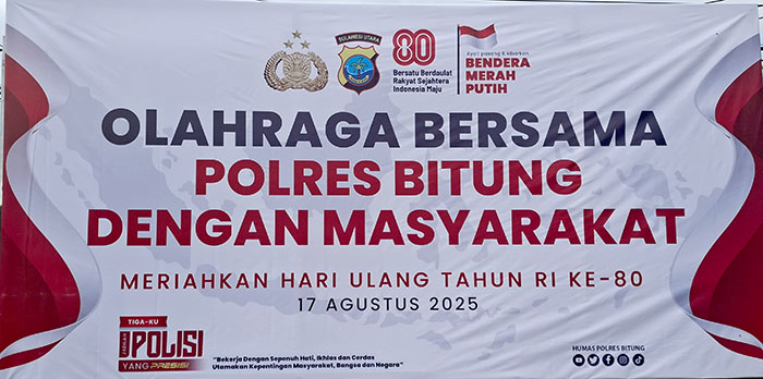 BITUNG, — Sambut Hari Ulang Tahun Republik Indonesia Ke-80 tanggal 17 Agustus 2025, Polres Bitung Laksanakan kegiatan Olahraga Bersama dengan Masyarakat Kota Bitung.