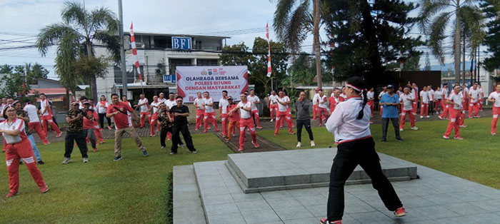 Kegiatan olah raga ini dipimpin langsung Oleh Kapolres Bitung AKBP Albert Zai, S.I.K, M.H, Wakapolres Bitung KOMPOL JH Daniel Korompis SE, diikuti oleh personil Polres Bitung serta Ibu-ibu Bhayangkari Cabang Bitung dan masyarakat Kota Bitung.