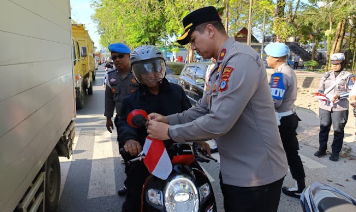 TANAH BUMBU, – Menyambut Hari Ulang Tahun (HUT) ke-80 Republik Indonesia, Polres Tanah Bumbu bersama jajaran Polsek menggelar aksi pembagian 1.000 lembar bendera Merah Putih secara serentak di seluruh wilayah Kabupaten Tanah Bumbu, Kamis (07/08/2025).