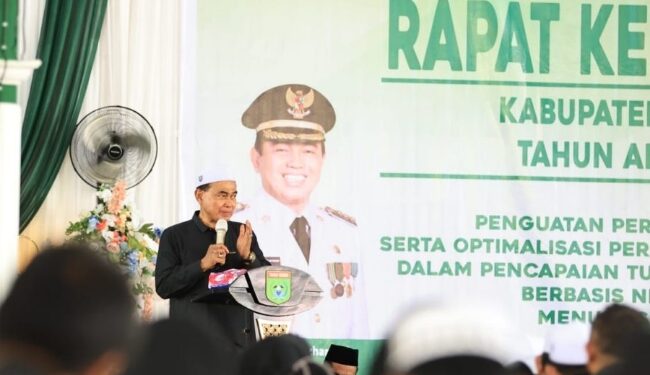 TANAH BUMBU, — Bupati Tanah Bumbu, Abah Zairullah Azhar membuka Rapat Kerja Daerah (Rakerda) Kabupaten Tanah Bumbu (Tanbu) tahun 2023, bertempat di Pendopo Serambi Madinah Kantor Bupati Tanbu, Kamis (28/12/2023).