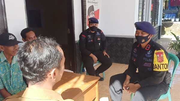 Cirebon- Anggota patroli kompi 4 batalyon C pelopor Satbrimob Polda Jabar Dpp Aipda Dayat Sudrajat melaksanakan patroli Dialogis Ke kantor Desa Winong kecamatan gempol Kab. Cirebon.sebagai Bakti brimob untuk masyarakat
